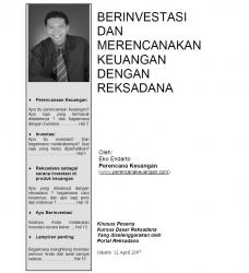 kalo boleh cerita pengalaman saya: akhir februari beli reksadana karena baru aja melek invest disana. langsung saya jual ORI saya dan pindahin semuanya ke RD. ternyata harganya jatuh terus-menerus huhuhu...(sedih). ya mau ga mau cuma bisa nunggu harganya naik lagi. nah skrg masih ada sisa dana niy, mau masuk lagi tapi takut tambah jeblok, jadi acara ini mnurut saya dapat membantu saya dalam mengambil keputusan.