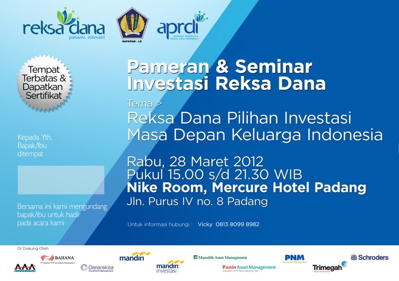 bro Eko Endarto sebagai bagian dari komunitas PortalReksadana, berbaik hati memberikan complimentary invitation bagi member yang ingin berpartisipasi dalam event tsb. Dengan membawa undangan ini, tinggal datang langsung ke acara, gratis.