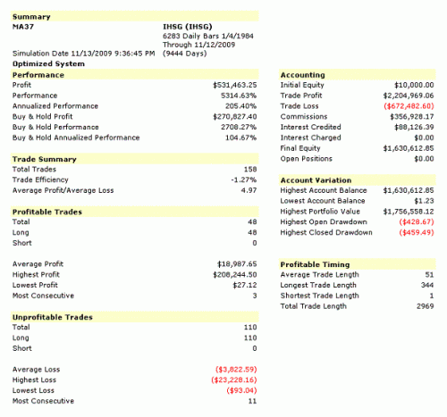 Pada artikel saya sebelumnya di sini : "Apakah Investasi Anda Menguntungkan? coba cek lebih cermat" kesimpulan yang didapatkan mungkin agak mengejutkan karena kinerja IHSG kurang menggembirakan jika dinilai dalam US dollar ataupun jika disesuaikan terhadap inflasi. Mau tidak mau, itu kenyataannya. Satu hal yang perlu mendapatkan perhatian, analisa tersebut berpegang pada asumsi bahwa investasi yang kita lakukan adalah "Buy n Hold". Kita menanamkan investasi kita hanya sekali dan kemudian kita biarkan tumbuh dengan sendirinya. Sebenarnya jika kita mau sedikit berusaha, kita bisa memperbaiki kinerja investasi kita. Salah satu caranya adalah dengan mempergunakan "Tehnical Analysis". Tidak dapat dapat dipungkiri, aliran ini cukup kontroversial di dalam dunia investasi karena dianggap tidak mempunyai dasar ilmiah yang cukup kuat untuk dapat dipercaya. Walaupun begitu, tidak ada ruginya juga kita mencoba untuk mempergunakannya jika terbukti menguntungkan karena keuntungan adalah "jiwa" dari investasi. Technical analysis sendiri konsepnya adalah menganalisa behavior dari para pelaku pasar. Akurasi respon kita terhadap perilaku mereka akan menentukan keberhasilan kita. Salah satu indikator yang paling sederhana dan sering digunakan adalah "moving average" yang masternya di sini adalah Passion4U. Berdasarkan tulisan saya sebelumnya di sini: "Optimalisasi Penggunaan Periode Simple Moving Average", didapatkan kesimpulan bahwa periode Simple Moving Average (SMA) yang optimal untuk IHSG adalah SMA 37. Berkaitan dengan perbaikan kinerja investasi kita, mari kita simulasikan penggunaan SMA 37 ini ke dalam IHSG ini. Apakah SMA 37 dapat mengalahkan metode buy n hold?