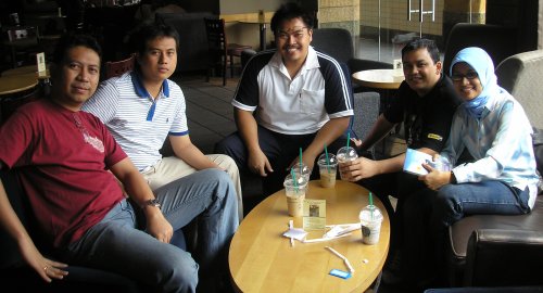 ![]() Masih dalam rangkaian roadshow di Jakarta yang sangat singkat, saya dan teman-teman PortalReksadana (Passion4U, Dunkz, PekerjaSDM) kopdar di Starbucks Plaza Senayan. Terima kasih berat untuk bro pekerjasdm yang menjadi sponsor kopdar ini. Walaupun sudah menjadi sponsor, ternyata saya dan bro pekerjasdm baru sekali itu mencicipi Starbucks... haha... :D Di kopdar inilah pertama kalinya saya bertemu muka dengan bro Dunkz. Untuk pertama kali juga, rekan sekalian dapat melihat sosok bro Dunkz di foto ini, checkout the cool guy just next to Passion4U.