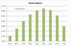 Menindaklanjuti komentar dari salah seorang member mengenai perbedaan imbal hasil antara skenario no rebalancing yang marjinal, penulis tergelitik untuk mencoba melakukan sensitivity analysis dengan menghitung perbedaan imbal hasil antara dua skenario tersebut untuk berbagai kombinasi rasio antara time deposit/SBI dengan saham, dengan menggunakan data pasar selama 10 tahun terakhir (1998-2007). Berikut adalah uraian mengenai hasil sensitivity analysisnya. Untuk menghitung imbal hasil portofolio, digunakan data pasar riil selama 10 tahun terakhir sebagai berikut: Penulis kemudian melakukan simulasi perhitungan imbal hasil portofolio dengan berbagai kombinasi rasio antara time deposit/SBI dengan saham untuk mendapatkan imbal hasil yang disetahunkan (annualized return) sebagai berikut: Dari tabel dan kedua grafik di atas memang terlihat perbedaan yang marjinal imbal hasil (excess return) antara skenario rebalancing dengan no rebalancing dan sepertinya excess return terbesar didapat dari rasio time deposit – saham sebesar 40-60 (40% time deposit – 60% saham). Tapi apakah ini selalu demikian? Rasanya tidak karena ini tergantung dari kondisi pasar (ingat bahwa simulasi ini dilakukan dengan menggunakan data riil pasar selama kurun waktu 10 tahun terakhir). Kalau memang perbedaan excess return-nya marjinal, mengapa investor melakukan rebalancing? Selain repot karena investor harus melakukan subscription dan redemption setiap tahun untuk mengembalikan rasio ke level awal tahun, biaya transaksi yang harus dikeluarkan juga lumayan besar sehingga menggerus excess return yang didapat. Poin terpenting dari rebalancing bukanlah untuk mendongkrak imbal hasil, tapi untuk mengontrol resiko dan menjaga tingkat likuiditas. Dengan mengembalikan rasio TD-saham ke level 60-40 setiap awal tahun, misalnya, investor dapat membatasi eksposurnya terhadap resiko investasi setiap instrumen sehingga jika memang terjadi koreksi pasar, nilai kerugiannya bisa dibatasi pada tingkat tertentu.
