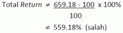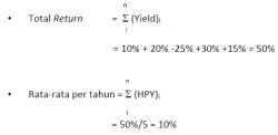Dalam hal ini total return tidak bisa dihitung hanya dengan melihat nilai awal dan nilai akhir investasi saja: