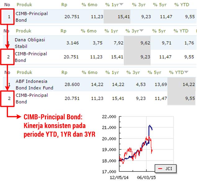 Untuk produk yang tidak dijual di IpotFund, ternyata ada RDPT yang lebih bersinar lagi, yaitu CIMB-Principal Bond. Kinerja produk ini konsisten di ranking 1 atau 2, pada periode YTD, 1YR maupun 3YR.