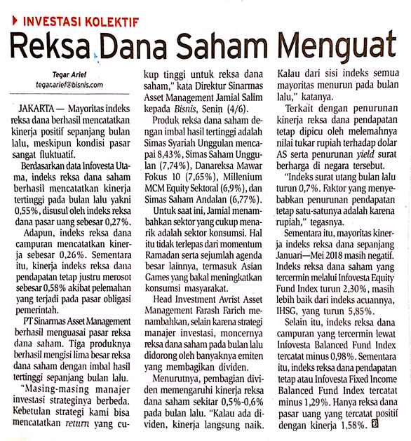 Ada 134 reksa dana saham dan campuran yang yang kinerjanya lebih dari +3,2%. Selengkapnya sebagai berikut: