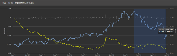 Sejak rekor tertingginya di 19 Februari 2018, bursa sudah jatuh -15,7%. Bursa kemudian rebound +4,8% yang kemudian memicu munculnya centang hijau terkini.