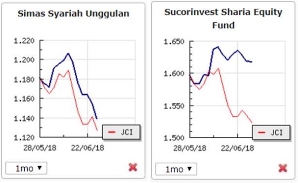Saat itu, ada 2 RDS Syariah yang kinerjanya muncul teratas, nomer satu Simas Syariah Unggulan ("RDS1"), dan berikutnya Sucorinvest Sharia Equity Fund ("RDS2"). RDS1 ini kinerjanya lebih unggul, tapi karakteristik AUM nya terus menurun. Sementara RDS2 karakteristik AUM nya datar dan melonjak. Karena saya bingung, saya masuk di keduanya.
