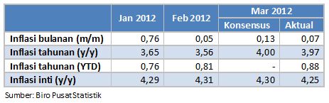 Harga minyak NYMEX turun 3,78% menjadi USD 103,02/barrel karena tingginya tingkat persediaan di Amerika Serikat, sementara harga minyak mentah Brent naik 1,09% menjadi USD122,8 ditengarai ketegangan yang terjadi di Iran. Di Indonesia, indeks harga konsumen tercatat sebesar 0,07% di bulan Maret (atau setara dengan inflasi tahunan sebesar 3,97%), naik akibat efek dasar yang rendah (low base effect) dari deflasi di bulan Februari 2012. Di bulan ini ekspektasi inflasi menyita perhatianpara investor seiring tindakan pemerintah yang bersikeras mengajukan rencanannya untuk menaikkan harga BBM ke DPR. Tindakan ini menuai protes dalam bentuk demonstrasi yang digelar oleh buruh dan mahasiswa di berbagai kota besar di Indonesia yang menolak kenaikan harga BBM. Tarik ulur kebijakan untuk menaikkan harga BBM mewarnai pergerakan pasar saham di bulan Maret. Ekspektasi yang sempat terbentuk yaitu pemerintah akan mengambil keputusan untuk menaikkan harga BBM sempat memicu demonstrasi di kota-kota besar dan akhirnya berakhir antiklimaks dengan dibatalkannya rencana kenaikan tersebut. Walaupun demikian, parlemen akhirnya memberikan opsi kepada pemerintah untuk bisa menaikkan harga BBM tanpa persetujuan parlemen apabila dalam 6 bulan terakhir harga Indonesian Crude Price (ICP) melampaui 15% asumsi ICP di APBN. Ditundanya kenaikan harga BBM ini akan menimbulkan overhang dan ketidakpastian lagi di pasar saham yang akan menyebabkan volatilitas tinggi.