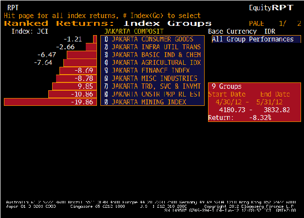 Semua sektor di IHSG membukukan penurunan di bulan Mei, di mana sektor pertambangan membukukan penurunan terbesar karena saham-saham batubara terimbas paling besar akibat pelemahan harga batubara di pasar spot.